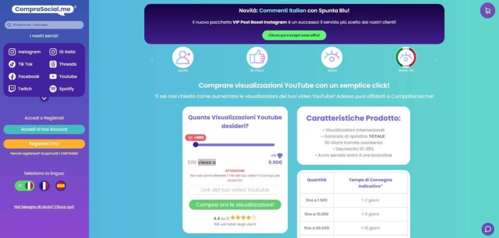 Se poi vuoi fornire una spinta immediata ai tuoi numeri, dai un’occhiata ai nostri servizi che permettono di potenziare ogni aspetto del tuo canale: